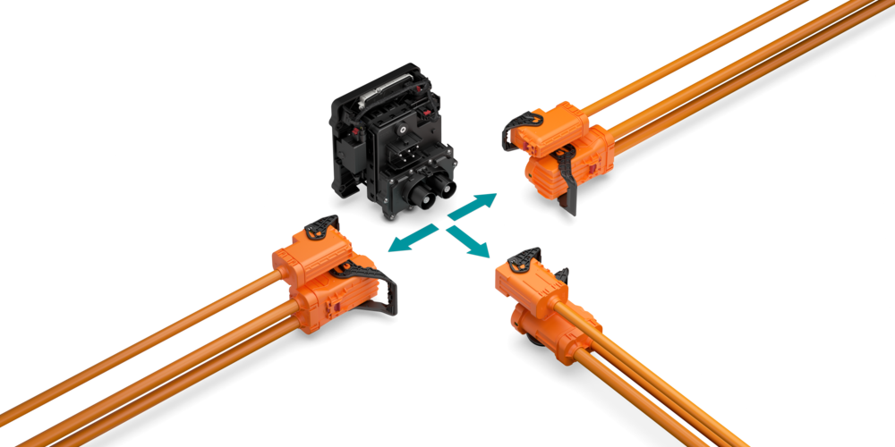 Die Integration der Steuerung spart Bauraum, da eine eigenständige EVCC nicht mehr verbaut werden muss. Insgesamt überzeugt das Inlet durch eine kompakte Bauform und ist modular im Kabelabgang. Leitungsabgänge können als 90° links, 90° rechts oder gerade gewählt werden. So lässt sich das Inlet in verschiedenste Fahrzeugplattformen integrieren, etwa in enge Bugbereiche von Stadtbussen, hochbelastete Rahmen von schweren LKW, modulare Power-Unit-Trays für Baumaschinen oder seitliche Einstiegspaneele bei Kommunalfahrzeugen.